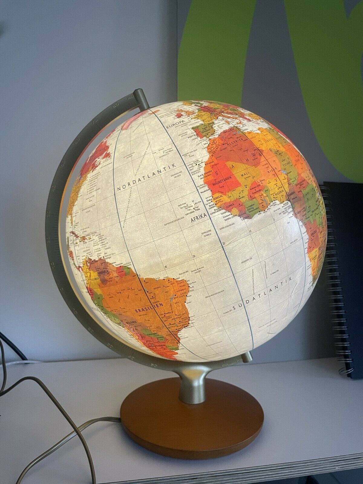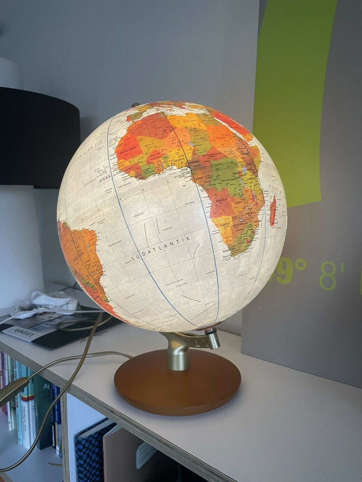 Minimale Abweichungen kann man nie ganz ausschließen. Das liegt im Ursprung der Handarbeit und der verwendeten Materialien, das Papier verändert seine Ausdehnung während des Kaschierens und des Trocknens. Dies macht den Charme der Handarbeit aus und jeden Globus zu einem Unikat.