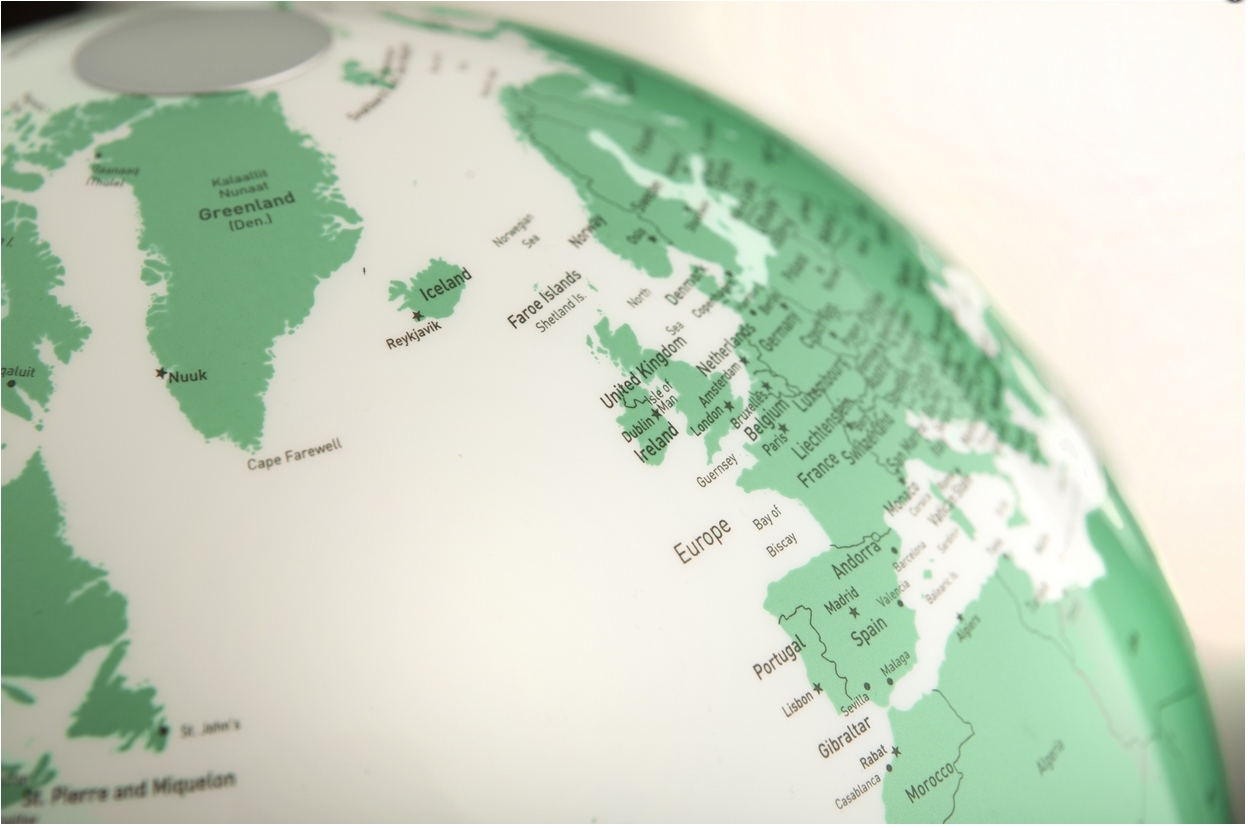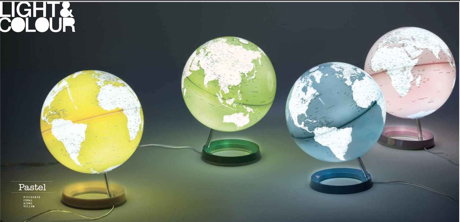 Light&Colour ist eine neue Produktline von Atmosphere, welche edles Design und außergewöhnliche Farben mit der kompakten Darstellung geografischer Informationen auf einem Globus verbindet.