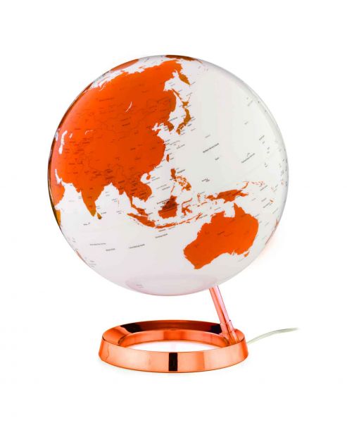 - Design-Leuchtglobus mit Kontinenten in Metallic-Orange und weißen Meeresflächen
