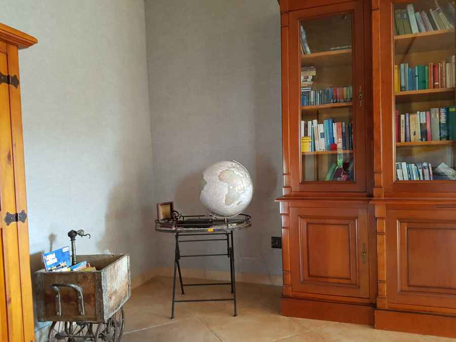 Die Meere erstrahlen im klassischen Blau, die Kontinente zeigen stolz ihre Erhöhungen durch ein plastisch wirkendes Relief in warmen Farbtönen und geben dem Raum ein angenehmes Ambiente.