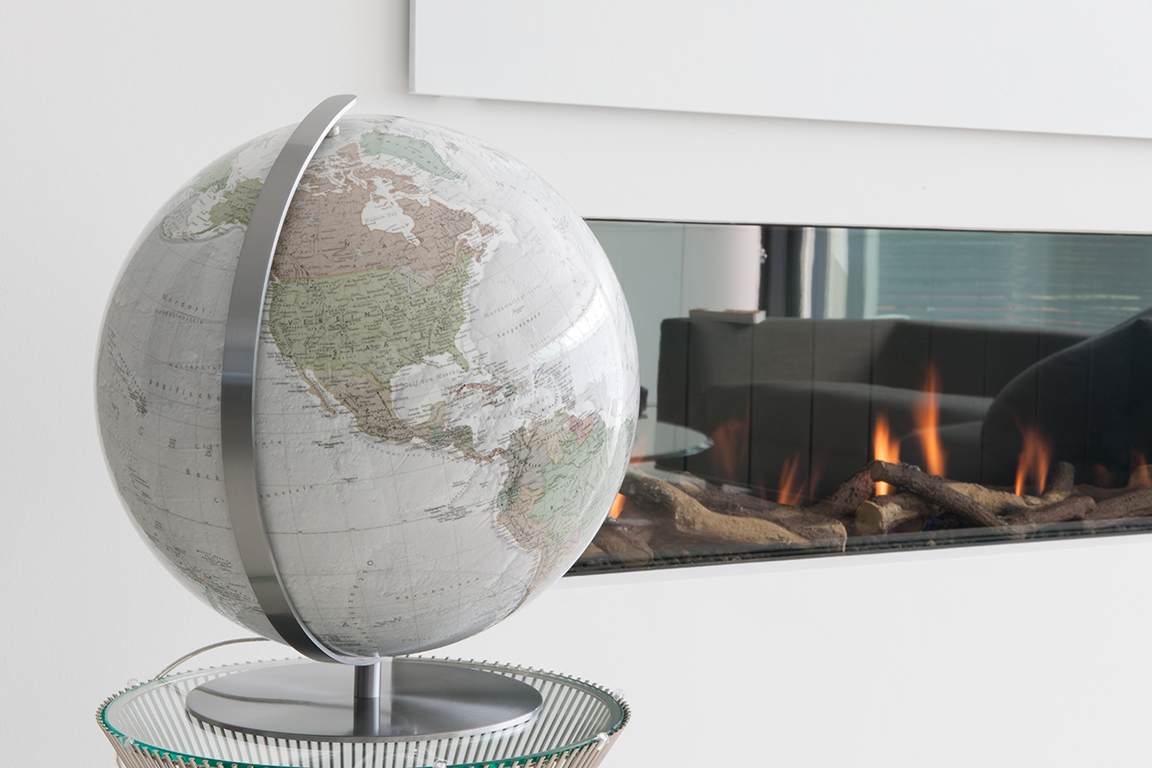 Er zeigt das politische Bild der Erde sowie deren Meeresstruktur. Durch die Innenbeleuchtung am Abend wechselt der Globus nicht nur sein Kartenbild, sondern auch seinen Charakter.