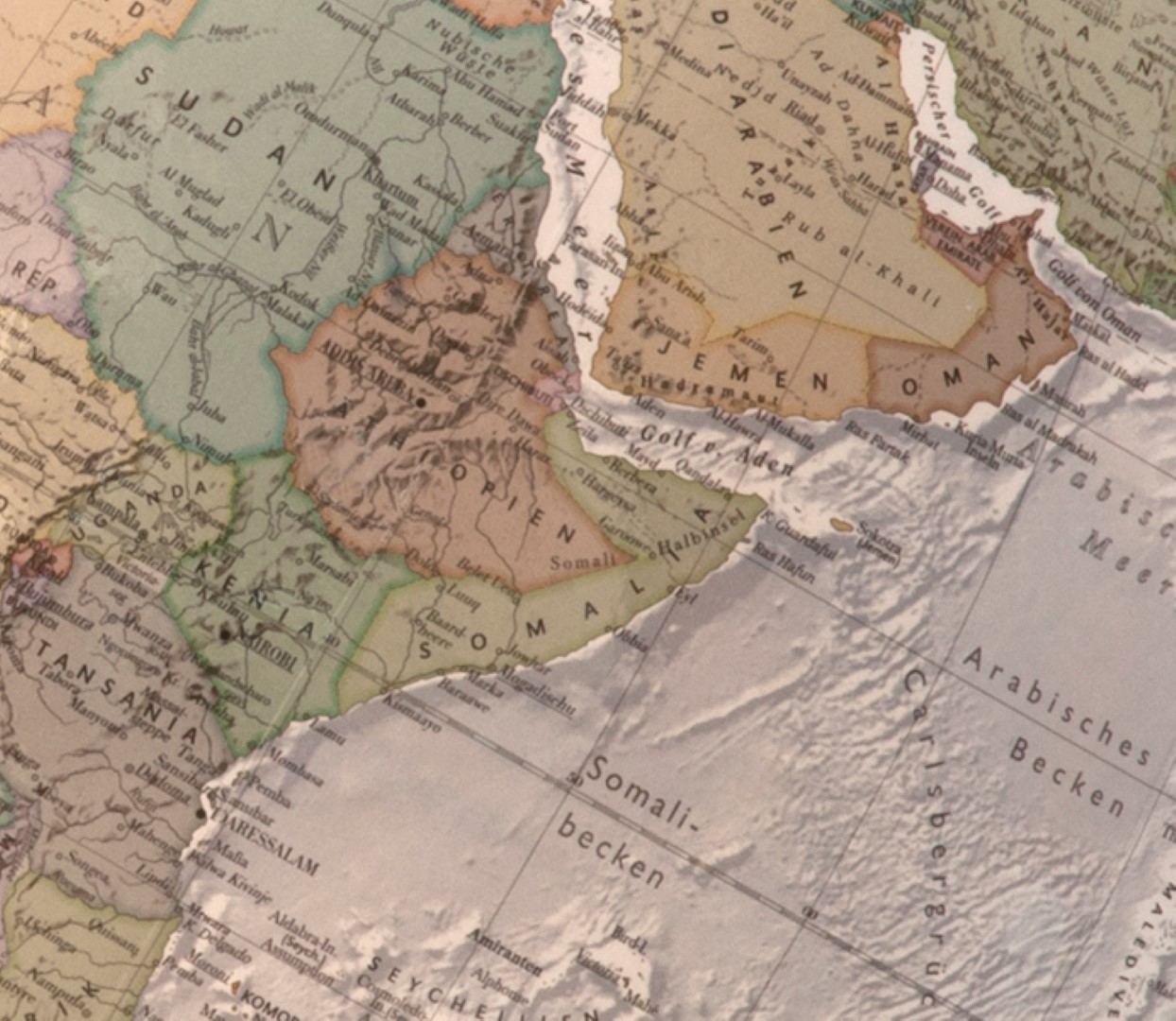 Die Meere erstrahlen im klassischen Blau, die Kontinente zeigen stolz ihre Erhöhungen durch