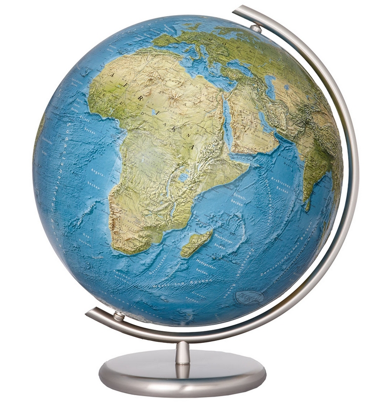 Sein vegetationsgeografisches Kartenbild zeigt Ihnen im unbeleuchteten Zustand den Blick auf die Erde in nie dagewesener Plastizität.