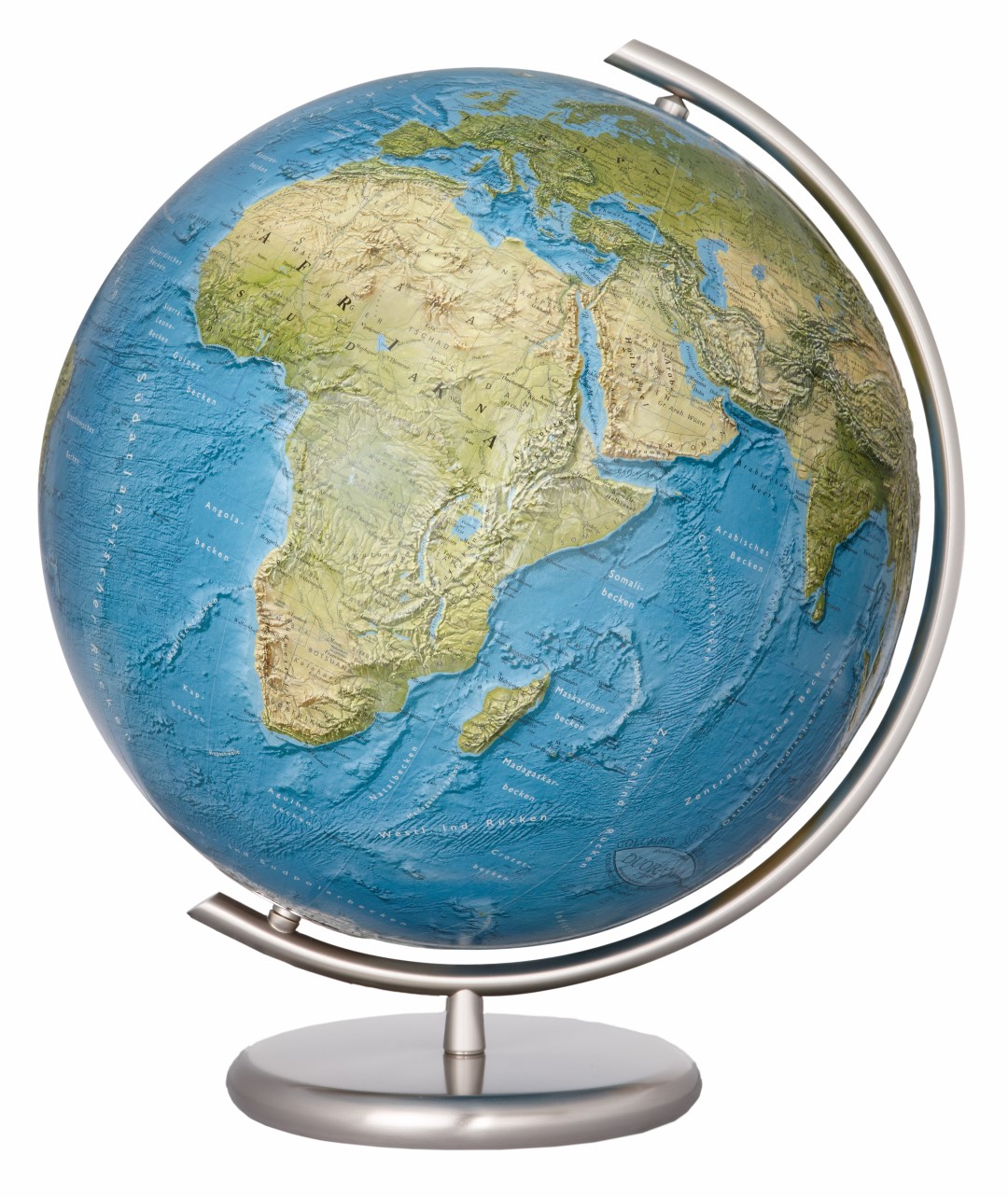 Sein vegetationsgeografisches Kartenbild zeigt Ihnen im unbeleuchteten Zustand den Blick auf die Erde in nie dagewesener Plastizität.
