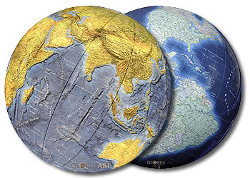 Die traditionell gefertigten Globen sind mit Acrylglaskugeln oder mundgeblasenen Kristallglaskugeln erhältlich. Das Kartenbild wird im Offset-Druckverfahren auf speziellem Papier gedruckt. Es besticht durch brillante Farben kombiniert mit höchster Detailtreue. Die hochfeine Auflösung bewirkt, dass der Rasterpunkt für das menschliche Auge so gut wie nicht mehr sichtbar ist.