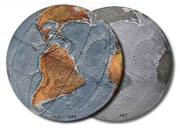 Er zeigt das politische Bild der Erde sowie deren Meeresstruktur.