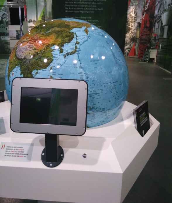 Pfiffige Ingenierue sowie Schreiner und Bühnenbauer die Ihr Handwerk absolut beherschen und verstehen haben bei diesem Kunstwerk zusammengearbeitet. So ist diese Installation neugierigen Kinderhänden genauso gewachsen wie dem allgemein hohen Pupikumaufkommen im Museum selbst. Hier können Sie unsere wunderbare Globusinstallation in Aktion erleben.