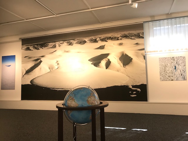 Diese sehr gelungene Ausstellung schmückt unter anderem ein großer Standglobus, der mit einer Karte von National Geographic äußerst detailiert ist. So ist auch die Nordhalbkugel, gerade auch im Bereich um Grönland sehr gut für den Betrachter nachvollziehbar.